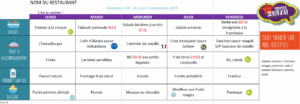 Menu de la cantine scolaire du 1 au 5 septembre 2025