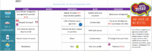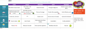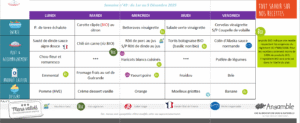 Menus de la cantine scolaire du 3 novembre au 17 décembre 2025