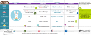 Menu de la cantine scolaire du 30 mars au 10 avril 2026